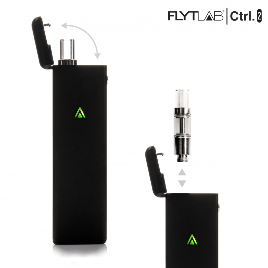 The FlytLab Ctrl 2.0 is designed with ease of use in mind. To load your cartridge, simply unlock the device by pressing the Lid Release Button on the side of the device. Insert the cartridge into the loading chamber and close the lid. The device is inhale-activated, and a vaporized dose will automatically be delivered when you inhale through the lid/mouthpiece. To change the voltage setting, unlock the lid and remove the cartridge. The LED will cycle through the 4 voltage settings. When the desired level is illuminated, insert the cartridge into the loading chamber and close the lid. To check the battery level, gently tap the bottom of the device on any firm surface, and the LED light will illuminate to indicate the battery level.