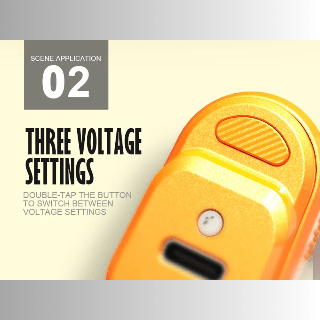 – Adjust the voltage by pressing the button twice (2) within 0.8 seconds.