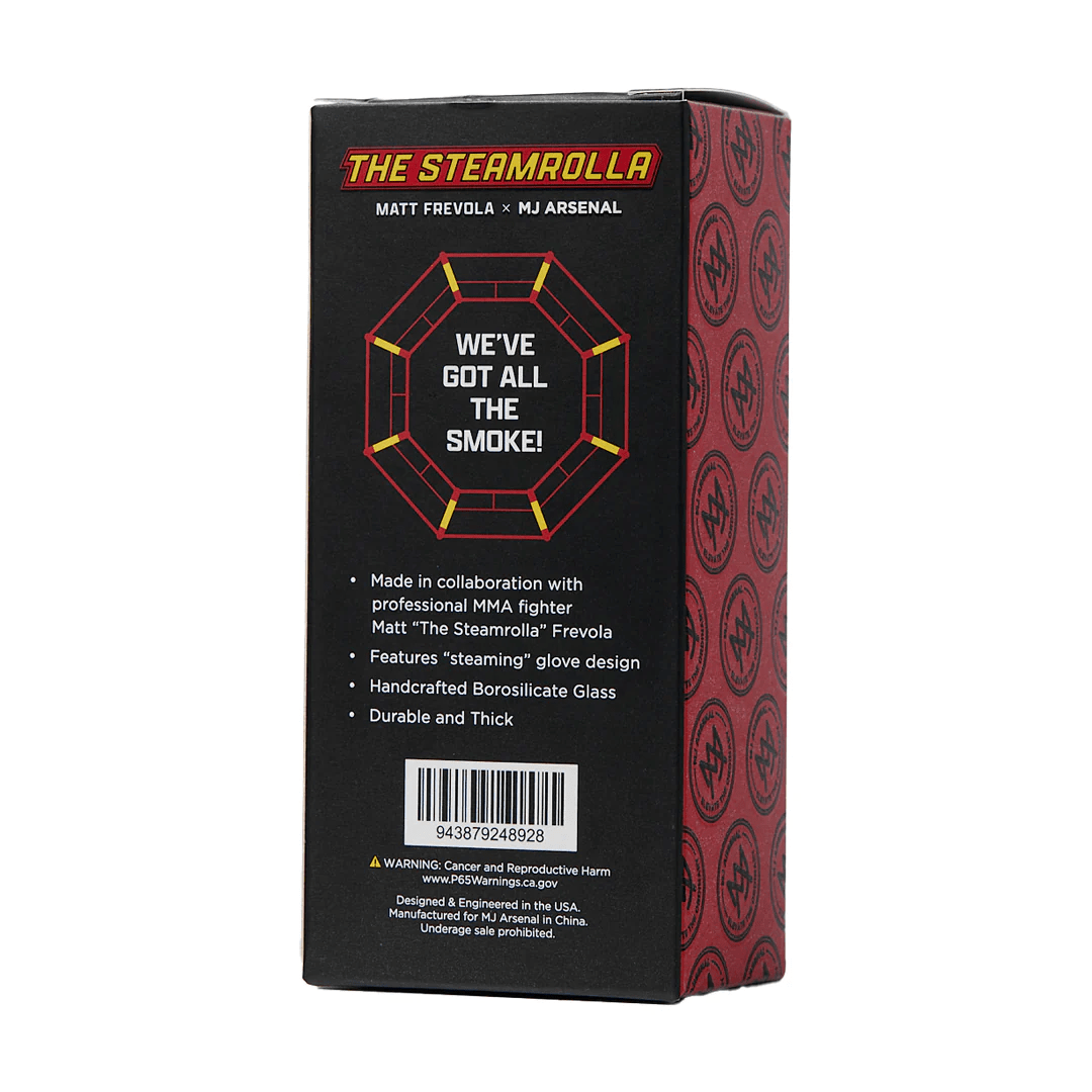Introducing ‘The Steamrolla’ – This isn’t just any steamroller; it’s a masterpiece featuring a functional, handcrafted borosilicate glass MMA glove. Every rip delivers a knockout punch of smoke, flowing directly from the fist to your mouth with impeccable flavorand smoothness. The full-color, handmade glass MMA glove isn’t just a feature; it’s a statement – a tribute to the fighters and a nod to the connoisseurs of smoking artistry. Whether you’re a smoker, a vaper, or an MMA enthusiast, ‘The Steamrolla’ is crafted for those who demand excellence and dare to elevate their experience. Get ready to feel the rush of victory with every hit from ‘The Steamrolla’ – where every session is a win.